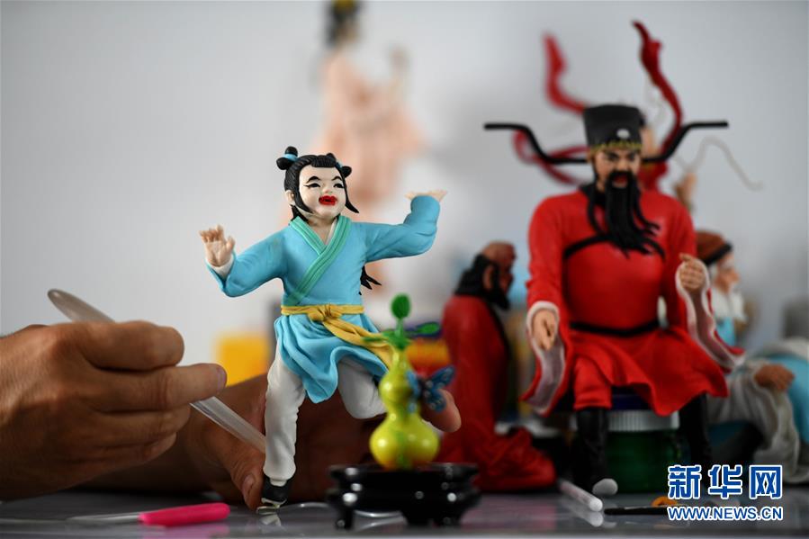 6月11日,在河北省石家莊市深澤縣職業(yè)技術(shù)教育中心,民間藝人王亮展示自己創(chuàng)作的面塑作品。 深澤面塑是當?shù)赜忻拿耖g手工技藝,傳承歷史悠久。石家莊市深澤縣民間藝人王亮自幼酷愛手工,他專注面塑創(chuàng)作20多年,推出歷史神話人物、十二生肖、田園風(fēng)光等作品。近年來,王亮致力于傳承面塑民間技藝,將其帶到20多個國家和地區(qū)進行文化交流,讓更多人接觸、了解到中國傳統(tǒng)民間藝術(shù)。 新華社發(fā)(許建園 攝)
