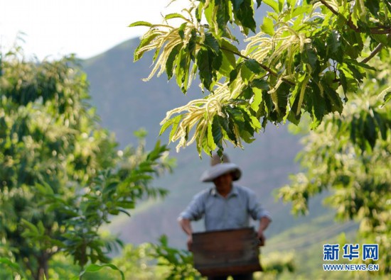 6月10日,河北省遷安市大五里鄉(xiāng)農(nóng)民在板栗林中打理套種的農(nóng)作物。 近日,河北省遷安市栗花進(jìn)入盛花期。遷安市板栗栽培歷史悠久,現(xiàn)有種植面積11萬畝,是帶動(dòng)當(dāng)?shù)剞r(nóng)民增收的特色產(chǎn)業(yè)。 新華社記者 牟宇 攝