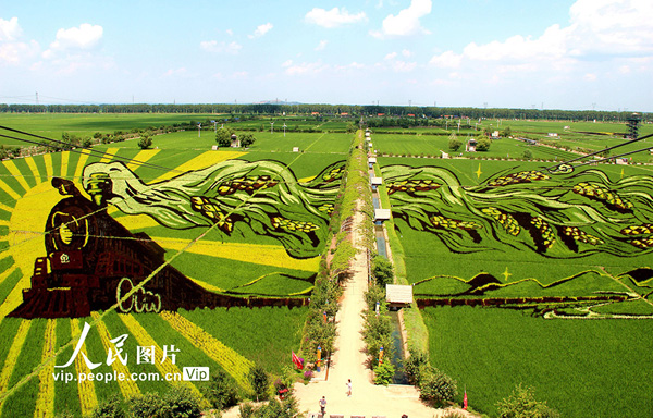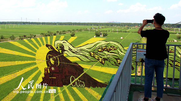 2020年7月7日,位于遼寧省沈陽市興隆臺錫伯族鎮(zhèn)的稻夢空間園區(qū)內(nèi)的3D稻田畫進(jìn)入最佳觀賞期。據(jù)了解,今年園區(qū)共制作了包括《向美好生活出發(fā)》《萬眾一心》在內(nèi)的十余幅稻田畫,共占地二百畝。王登虎/人民圖片