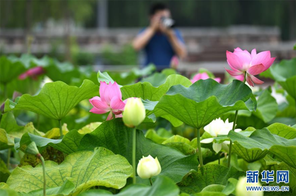 7月9日,在位于石家莊市鹿泉區(qū)的龍泉湖濕地公園,游客在園內(nèi)賞景拍照。 位于河北省石家莊市鹿泉區(qū)的龍泉湖濕地公園,規(guī)劃面積5000余畝,是該市打造的較大規(guī)模城市濕地公園。近年來,石家莊市以“城在景中、景在城中、見山見水”的發(fā)展理念,將多年堆積廢物的垃圾溝改造成為水清草綠的生態(tài)濕地公園。昔日垃圾場變身“天然氧吧”,成為市民觀光、休閑、健身的好去處。 新華社發(fā)(陳其保 攝)