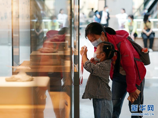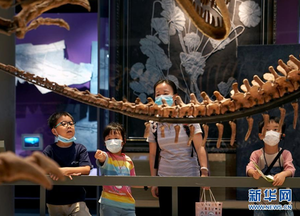 7月15日,小朋友和家長(zhǎng)在上海自然博物館參觀。 進(jìn)入暑假,不少家長(zhǎng)帶著孩子到上海自然博物館參觀。該展館采取實(shí)名制分時(shí)段購(gòu)票參觀、參觀人數(shù)分時(shí)限流、發(fā)布次日參觀人數(shù)預(yù)測(cè)等舉措,加強(qiáng)防疫常態(tài)化管理。 新華社記者 劉穎 攝