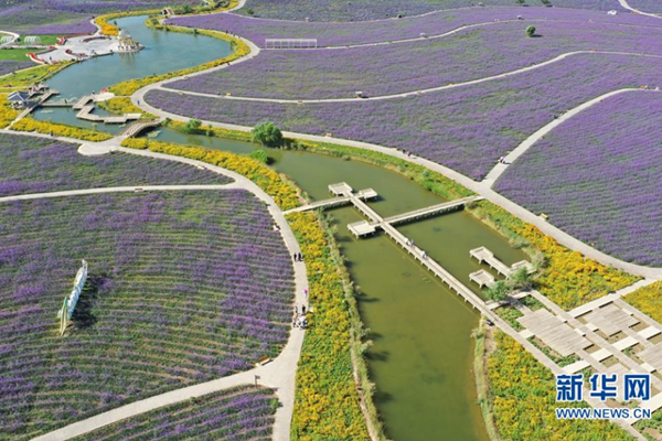 這是7月12日拍攝的甘肅省金昌市紫金苑景區(qū)(無人機(jī)照片)。 甘肅省金昌市是我國最大的鎳鈷生產(chǎn)基地,有“鎳都”之稱。近年來,金昌市大力推進(jìn)花園城市建設(shè),利用當(dāng)?shù)貢円箿夭畲蟆⒐庹粘渥愕茸匀粭l件,引種花卉,讓這座地處戈壁的工業(yè)城成為掩映在花海中的田園花城。 新華社發(fā)(杜哲宇 攝)