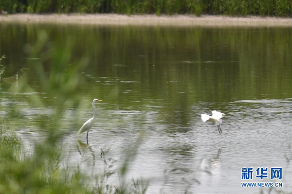7月23日,一只白鷺在天津大黃堡濕地自然保護(hù)區(qū)內(nèi)覓食 新華社發(fā)(孫凡越 攝)