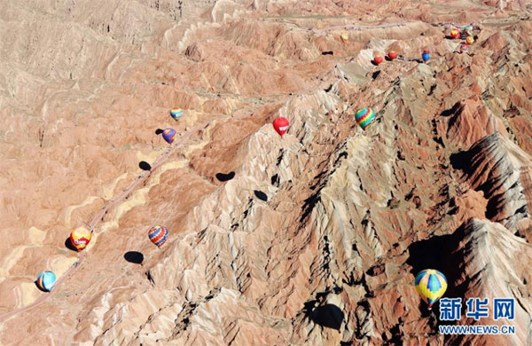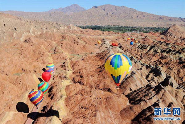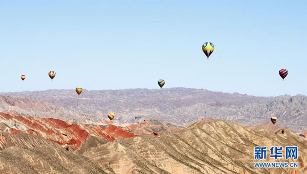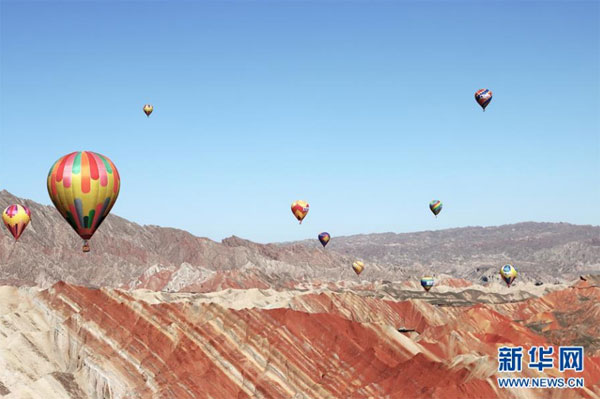 7月26日,熱氣球在張掖七彩丹霞景區(qū)升起。 當(dāng)日,第二屆中國·張掖七彩丹霞(國際)熱氣球節(jié)拉開帷幕,活動為期12天,100具熱氣球?qū)⑦M行4個場次的集中飛行表演和20個場次的常態(tài)化飛行表演。 新華社發(fā)(成林 攝)