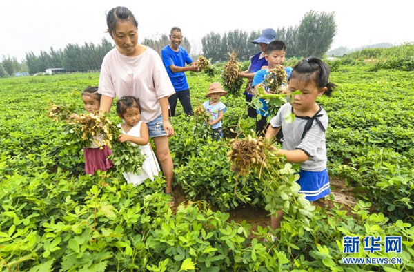8月6日,小朋友在河北省永清縣后奕鎮(zhèn)一處休閑樂園里采摘花生。 近年來,河北省永清縣采取“農(nóng)業(yè)+文化+旅游”方式,整合農(nóng)業(yè)、人文、生態(tài)等資源優(yōu)勢,通過召開旅發(fā)大會等形式,打造休閑游、采摘游、親子游等特色旅游活動,積極推動鄉(xiāng)村旅游發(fā)展,促進當(dāng)?shù)厝罕娋蜆I(yè)增收,助力鄉(xiāng)村振興。 新華社記者 李曉果 攝