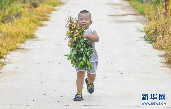 8月6日,小朋友在河北省永清縣后奕鎮(zhèn)一處休閑樂園里運送采摘的花生。 近年來,河北省永清縣采取“農(nóng)業(yè)+文化+旅游”方式,整合農(nóng)業(yè)、人文、生態(tài)等資源優(yōu)勢,通過召開旅發(fā)大會等形式,打造休閑游、采摘游、親子游等特色旅游活動,積極推動鄉(xiāng)村旅游發(fā)展,促進當(dāng)?shù)厝罕娋蜆I(yè)增收,助力鄉(xiāng)村振興。 新華社記者 李曉果 攝