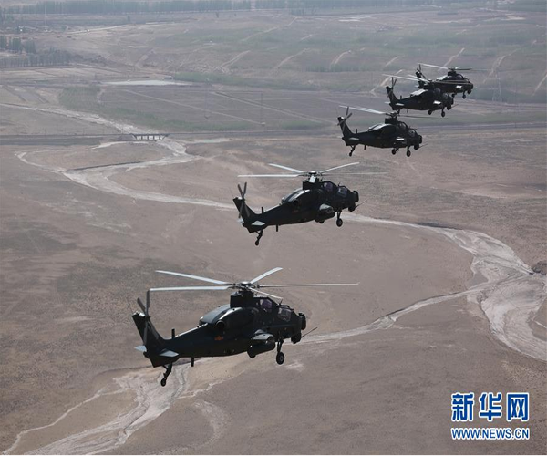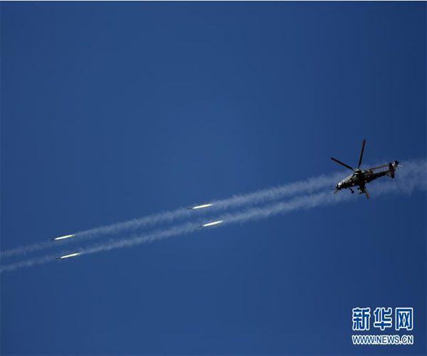 西部戰(zhàn)區(qū)陸軍第77集團軍某陸航旅組織武裝直升機赴高原地區(qū)展開實彈射擊訓練(2017年9月27日攝)。新華社發(fā)(傅磊 攝)