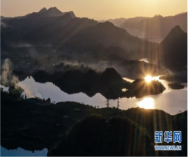 11月10日拍攝的貴陽(yáng)市阿哈湖國(guó)家濕地公園(無(wú)人機(jī)照片)。 初冬時(shí)節(jié),貴州省貴陽(yáng)市阿哈湖國(guó)家濕地公園色彩斑斕,景色怡人。 新華社記者 歐東衢 攝