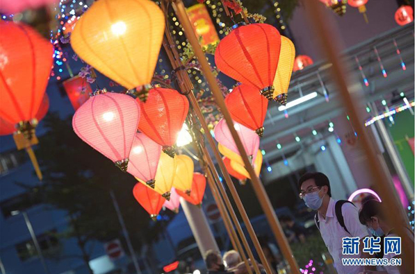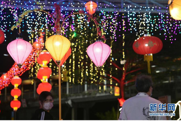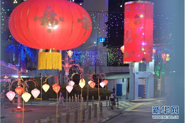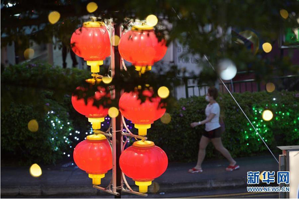 1月18日,慶祝農(nóng)歷新年的燈飾在新加坡紅山組屋區(qū)亮起。 新華社發(fā) (鄧智煒 攝)