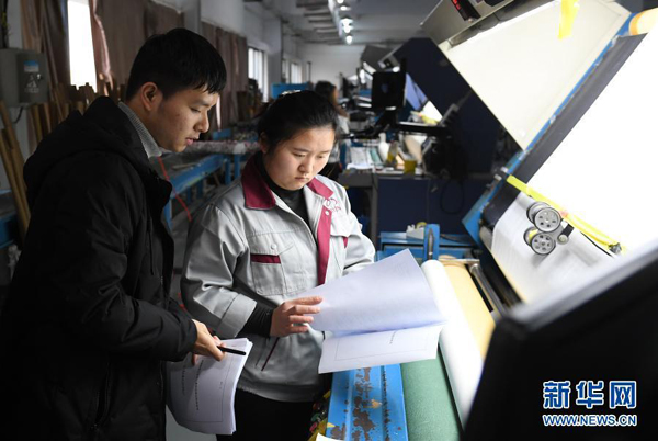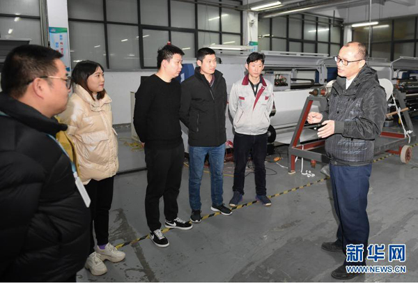 1月22日,環(huán)渚街道司法工作人員(右一)走訪一家企業(yè),對(duì)務(wù)工人員進(jìn)行維權(quán)指導(dǎo)和現(xiàn)場(chǎng)答問(wèn)。新華社記者 翁忻旸 攝