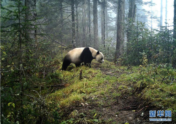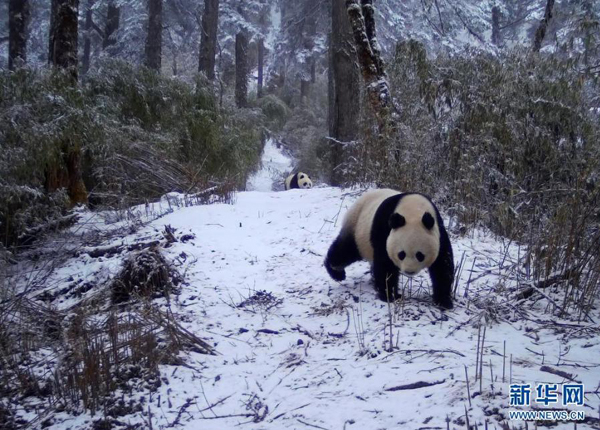 這是紅外相機拍攝到的野生大熊貓活動畫面(資料圖片)。新華社發(fā)(甘肅白水江國家級自然保護區(qū)管理局供圖)