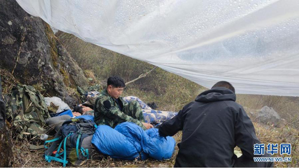 遇到極端天氣時,開展野外巡護工作的護林員在臨時搭建的休息區(qū)內(nèi)休息(資料圖片)。新華社發(fā)