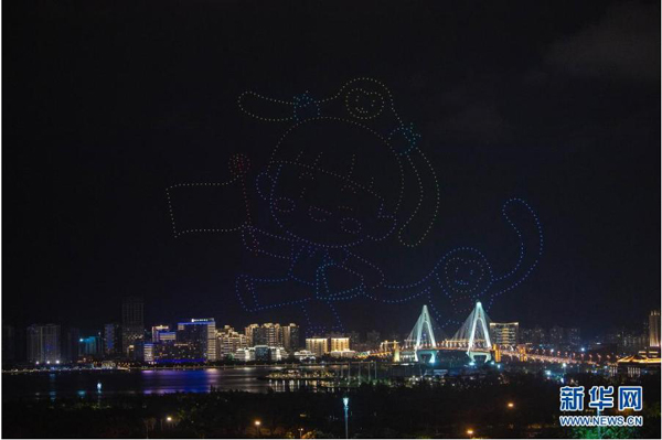 這是5月6日在??谂臄z的無(wú)人機(jī)表演秀。