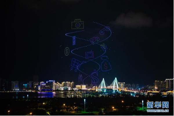 首屆中國(guó)國(guó)際消費(fèi)品博覽會(huì)將于5月7日至10日在位于??诘暮D蠂?guó)際會(huì)展中心舉辦。5月6日晚,海口市上演無(wú)人機(jī)表演秀,迎接首屆消博會(huì)的舉辦。
