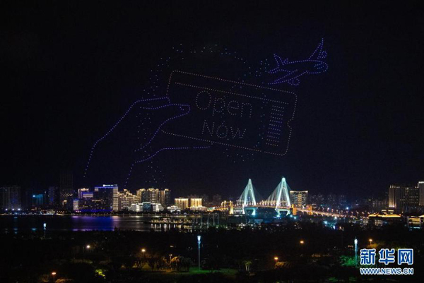 首屆中國(guó)國(guó)際消費(fèi)品博覽會(huì)將于5月7日至10日在位于??诘暮D蠂?guó)際會(huì)展中心舉辦。5月6日晚,??谑猩涎轃o(wú)人機(jī)表演秀,迎接首屆消博會(huì)的舉辦。