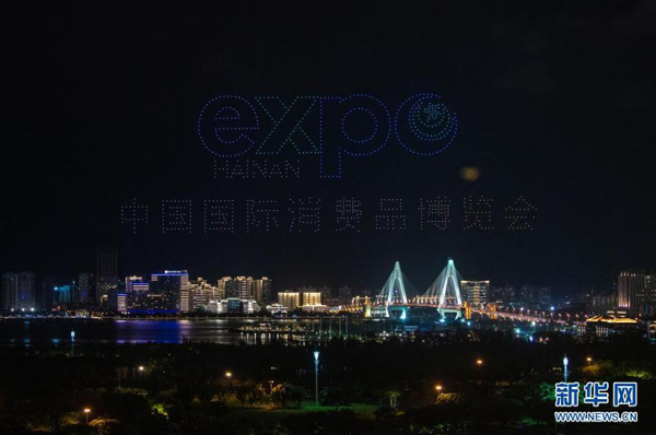 首屆中國(guó)國(guó)際消費(fèi)品博覽會(huì)將于5月7日至10日在位于海口的海南國(guó)際會(huì)展中心舉辦。5月6日晚,海口市上演無(wú)人機(jī)表演秀,迎接首屆消博會(huì)的舉辦。