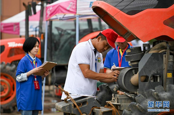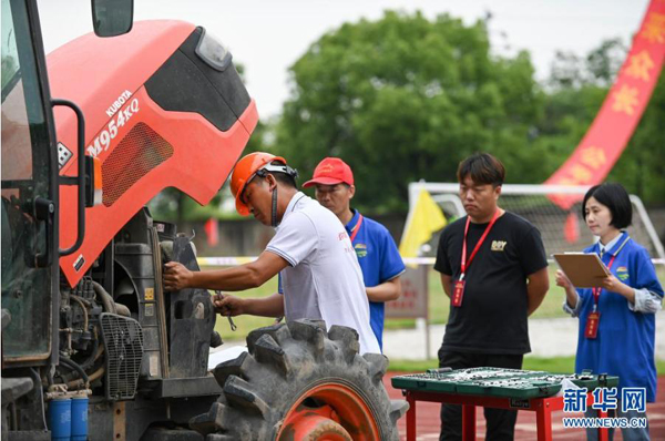 當日,浙江省金華市舉行首屆農業(yè)職業(yè)技能競賽。來自各縣市區(qū)的150余名選手參加農機修理、農機駕駛操作、農作物病蟲害防治等項目競賽?;顒又荚谕ㄟ^競賽加快培養(yǎng)農業(yè)高技能人才,弘揚工匠精神,營造勞動光榮的社會風尚和精益求精的敬業(yè)風氣。新華社發(fā)(胡肖飛 攝)