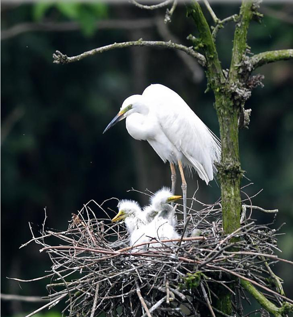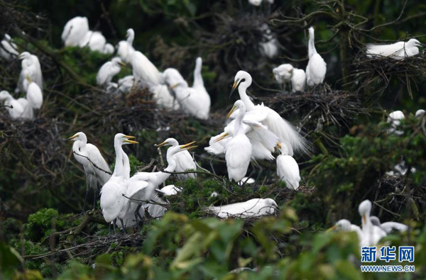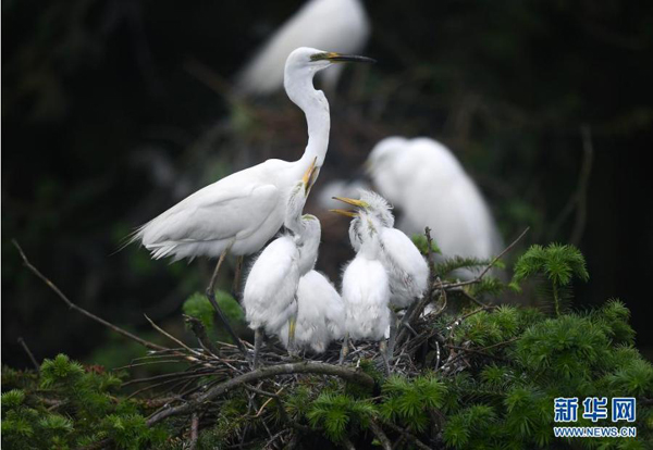 在南昌市新建區(qū)象山森林公園內(nèi),白鷺和雛鳥們在一起(5月18日攝)。