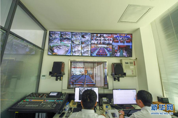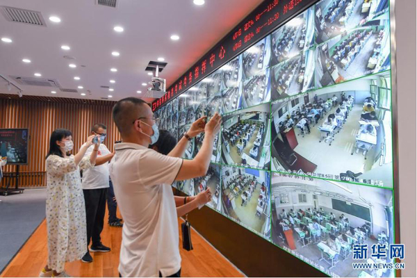 6月7日,在吉林省國家教育考試考務(wù)指揮中心,工作人員查看監(jiān)控畫面。