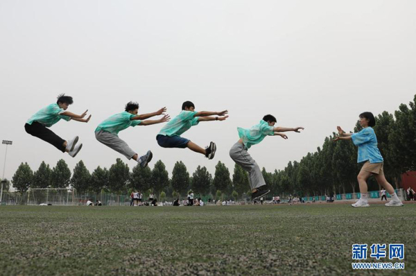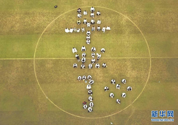 6月9日,焦作市溫縣一中高三畢業(yè)生在校園里擺出“畢業(yè)了”字樣拍攝畢業(yè)照。