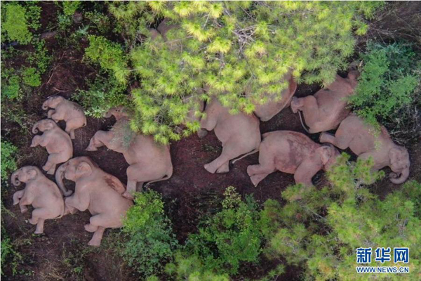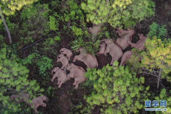 這是6月13日在云南省玉溪市易門縣十街鄉(xiāng)拍攝的象群(無(wú)人機(jī)照片)。