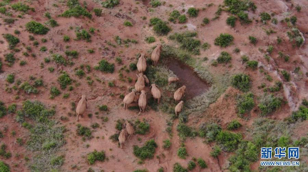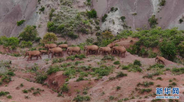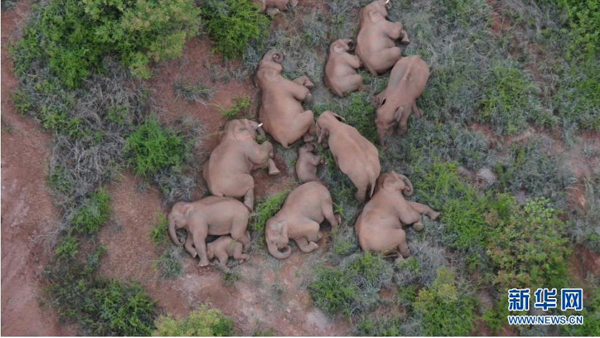 6月17日在玉溪市易門縣十街鄉(xiāng)拍攝的象群(無人機(jī)視頻截圖)。