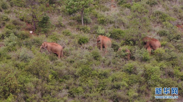 6月22日在云南省玉溪市峨山縣大龍?zhí)多l(xiāng)附近拍攝的象群(無(wú)人機(jī)視頻截圖)。