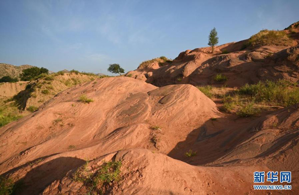 8月6日,朝霞映照下的靖邊縣龍洲鎮(zhèn)波浪谷丹霞景區(qū)。