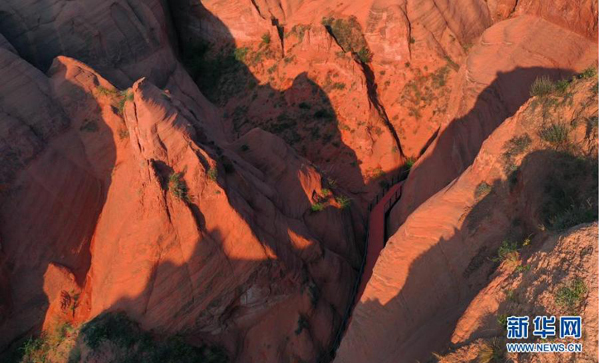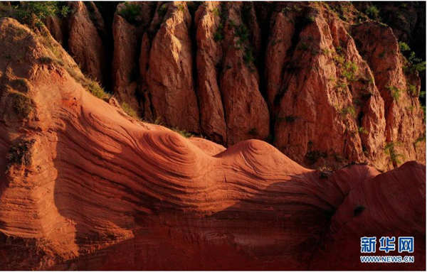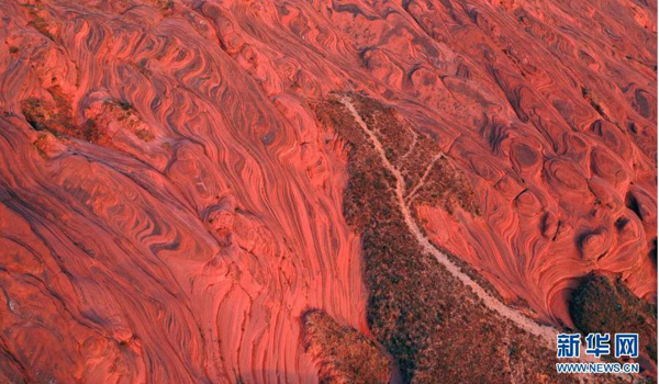 陜西省靖邊縣龍洲鎮(zhèn)波浪谷丹霞景區(qū)地處陜北黃土高原,峽谷四面環(huán)山,線谷、巷谷、絕壁等構(gòu)成了特有的波浪形砂巖地貌,景觀獨(dú)特。