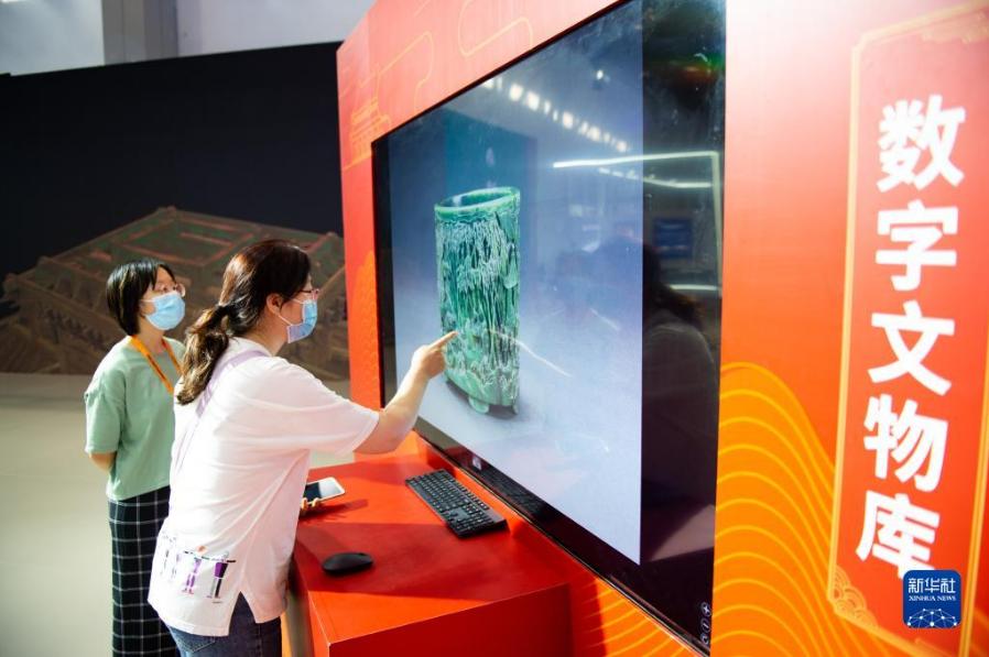 9月7日,觀眾在故宮博物院展位體驗(yàn)數(shù)字文物庫。