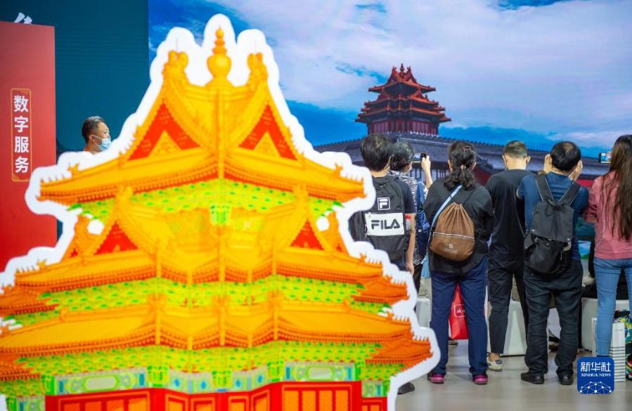 9月2日至7日,2021年中國國際服務(wù)貿(mào)易交易會在北京舉行。位于國家會議中心展區(qū)的故宮博物院展位,運(yùn)用數(shù)字技術(shù)再現(xiàn)故宮的建筑工藝、歷史典故等內(nèi)容,吸引眾多觀眾參觀體驗(yàn)。