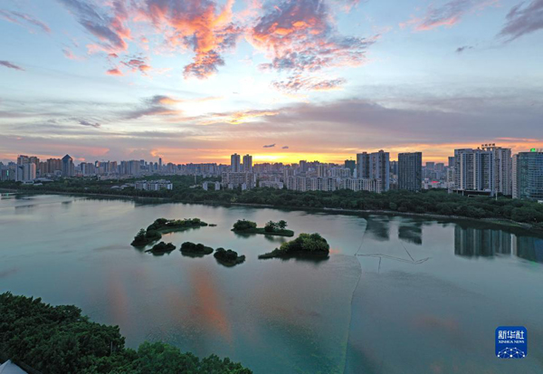 這是8月26日拍攝的廣西南寧市的絢麗晚霞(無人機(jī)照片)。