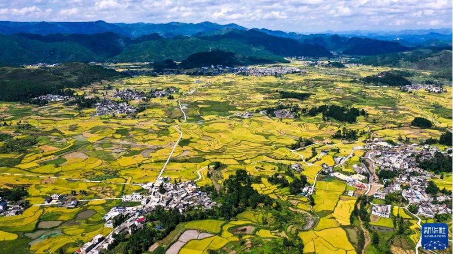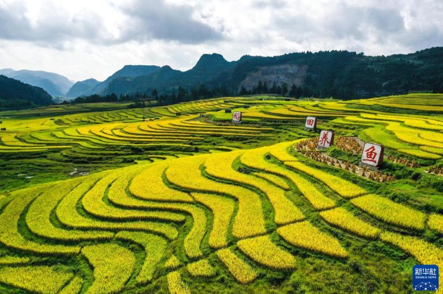 貴州省龍里縣灣灘河鎮(zhèn)羊場社區(qū)的稻田(9月15日攝,無人機(jī)照片)。