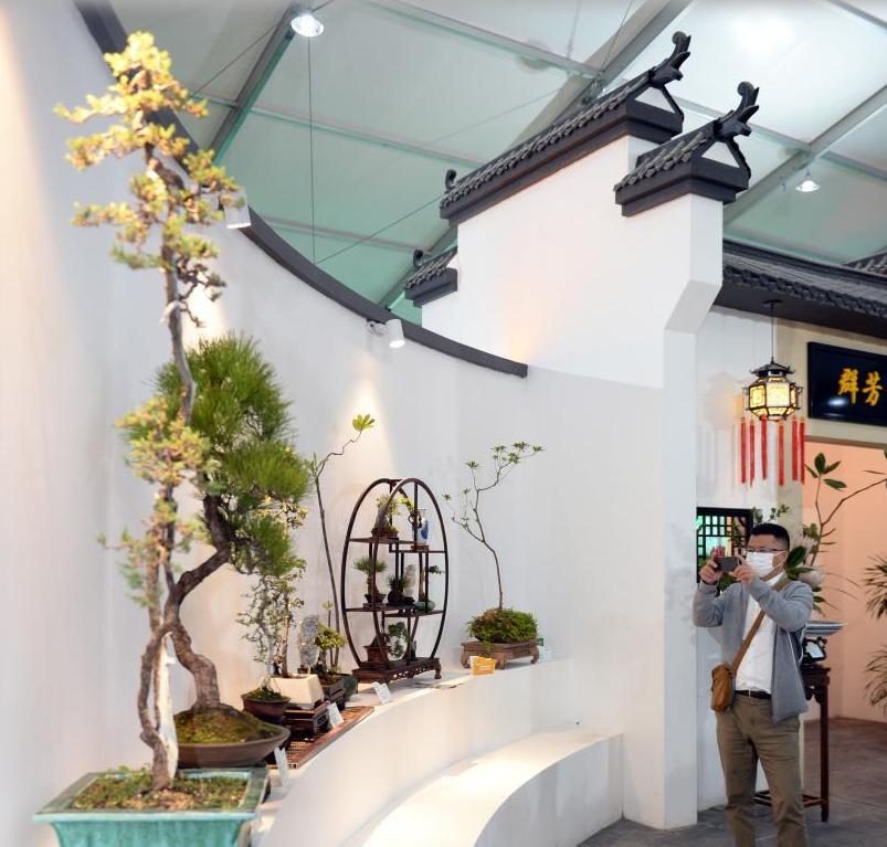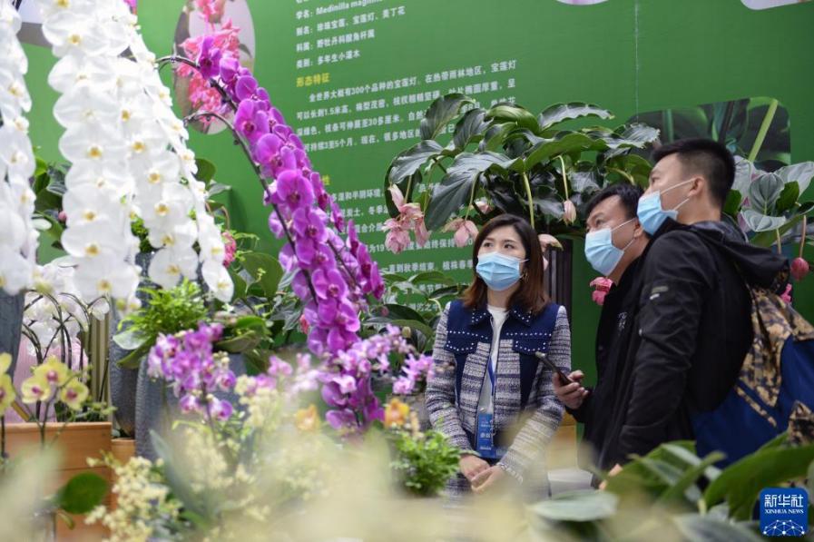 10月15日,參展商(左)向觀眾介紹花卉品種。當(dāng)日,為期三天的2021年湖南省花木博覽會在長沙市石燕湖景區(qū)開幕,設(shè)置室內(nèi)展區(qū)、室外展區(qū)和花卉苗木基地展區(qū)。