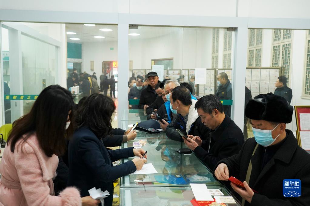 1月5日,集郵愛好者在江西南昌市中國郵政網(wǎng)點(diǎn)排隊購買虎生肖郵票。