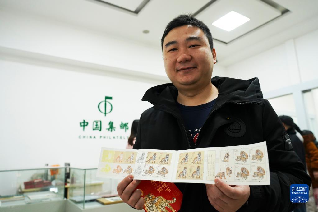1月5日,南昌集郵愛好者向記者展示購買的虎生肖郵票。