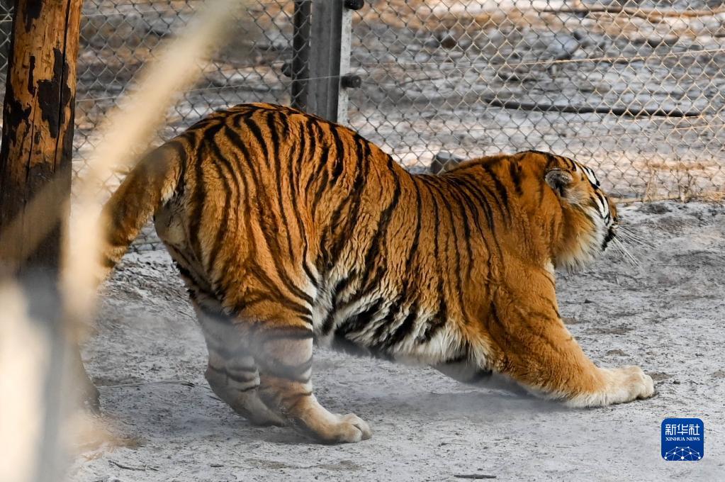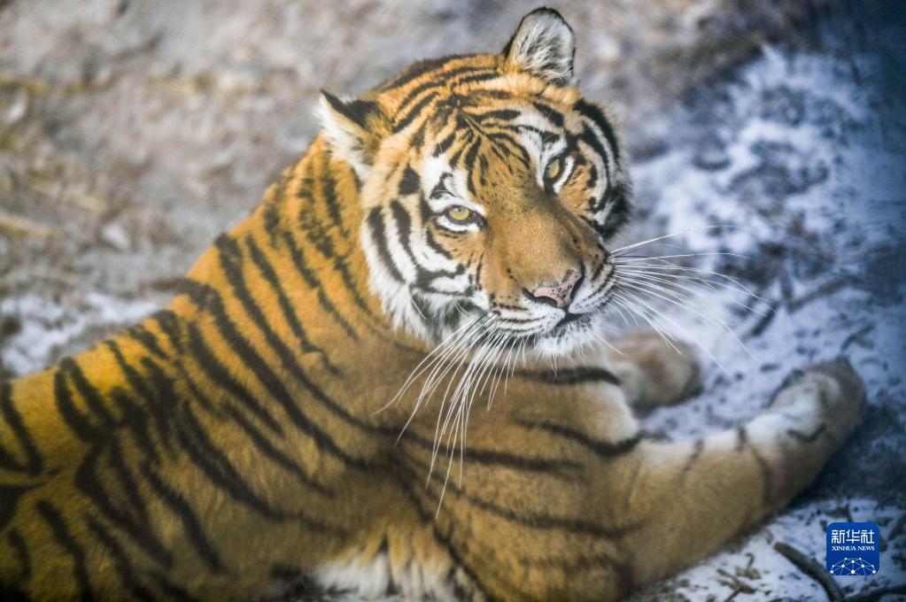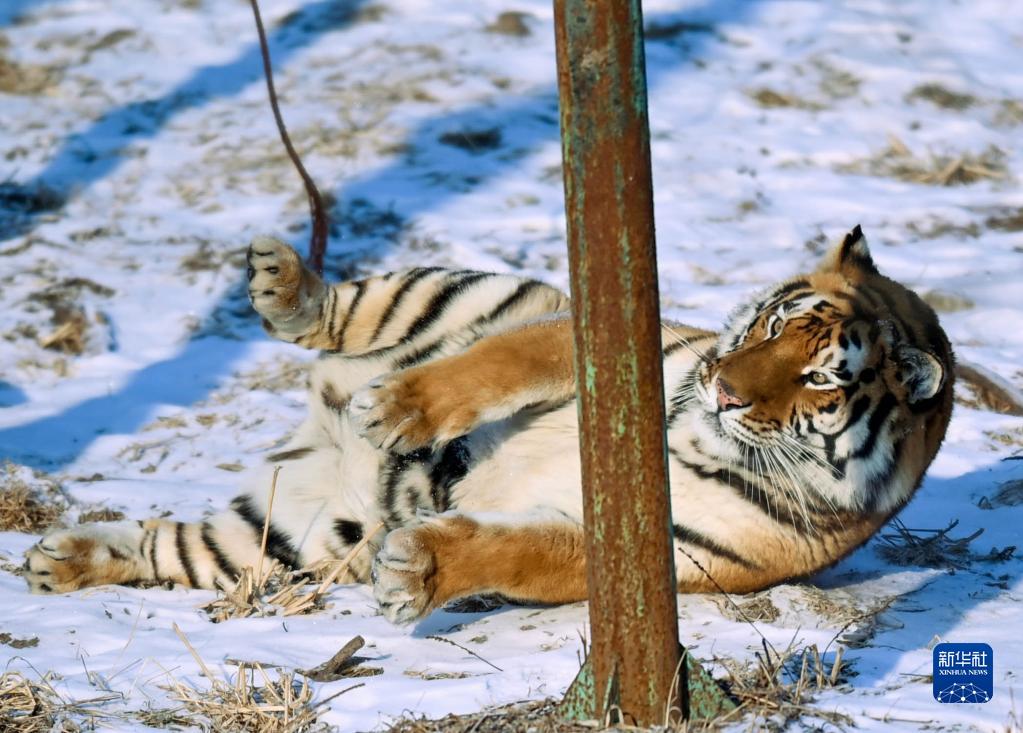 冬季里,在位于吉林長春的東北虎園內(nèi),東北虎享受愜意生活。