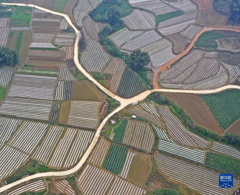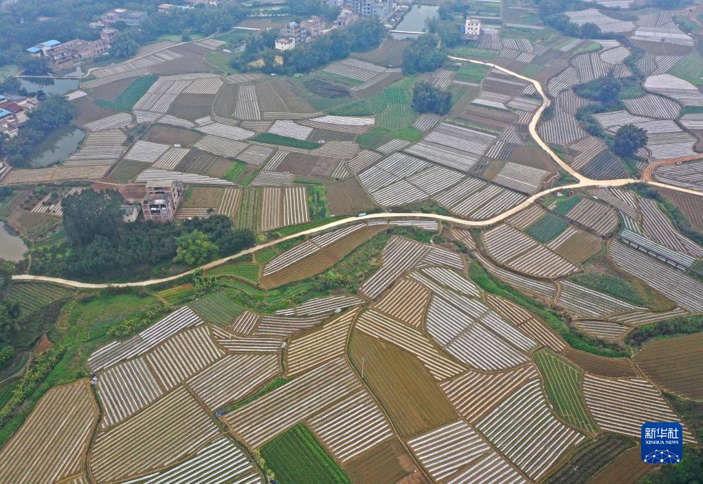 這是廣西南寧市興寧區(qū)五塘鎮(zhèn)田園春色(2月10日攝,無人機照片)。