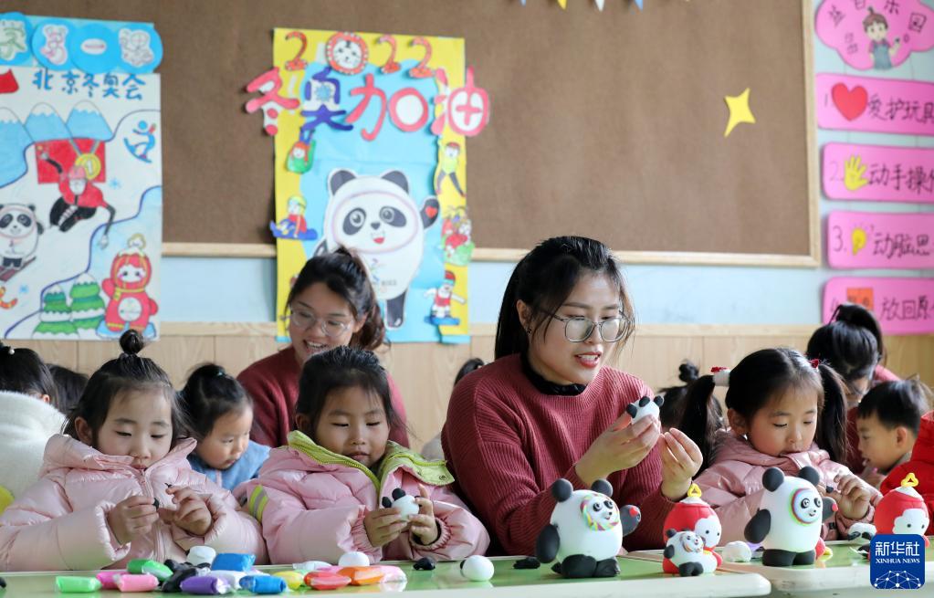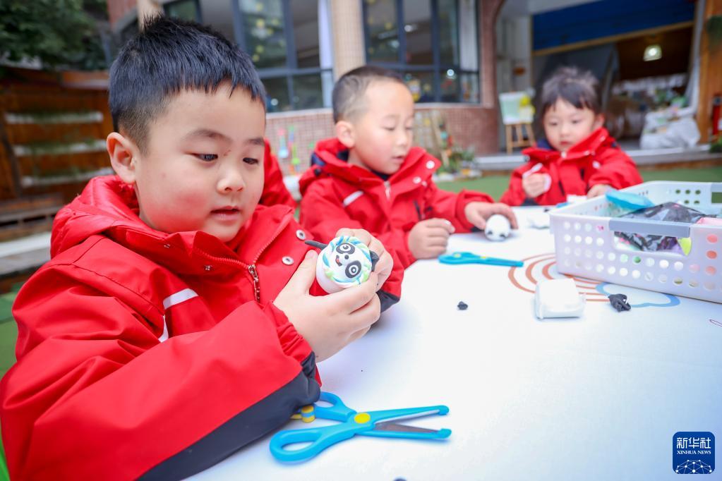 2月17日,四川省遂寧市順城街幼兒園開展“萌娃慶冬奧 我來捏冰墩墩”開學(xué)第一課主題活動(dòng)。