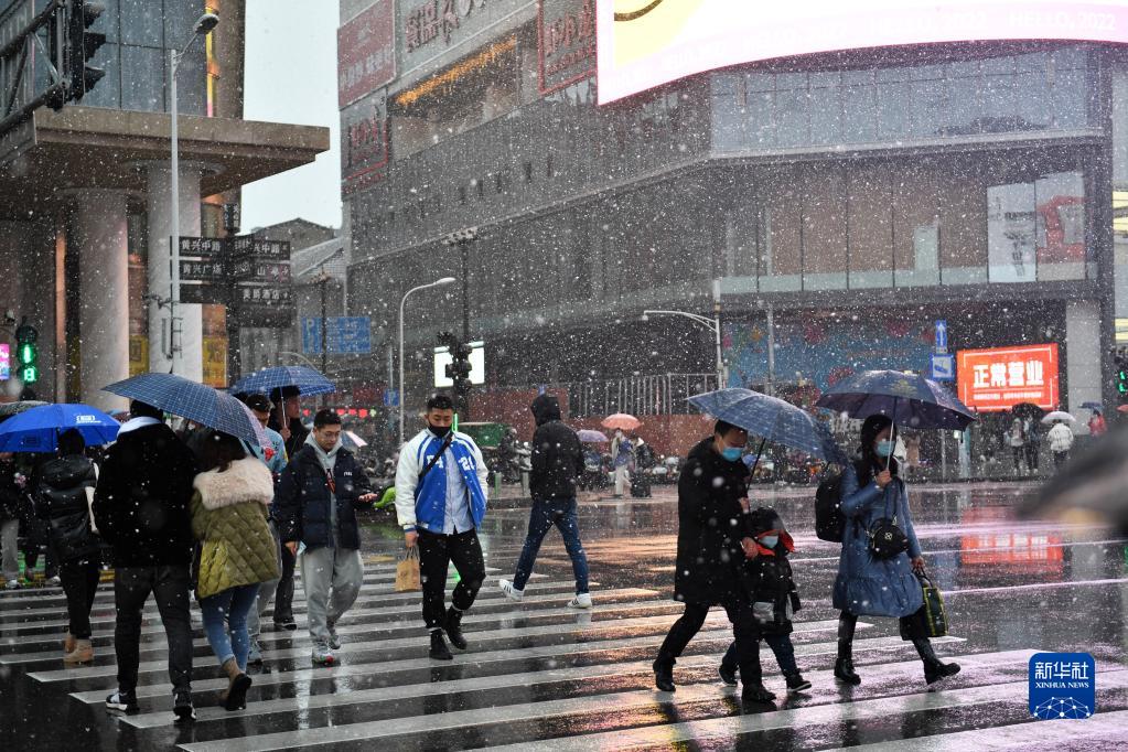 2月22日,市民在長沙街頭冒雪出行。