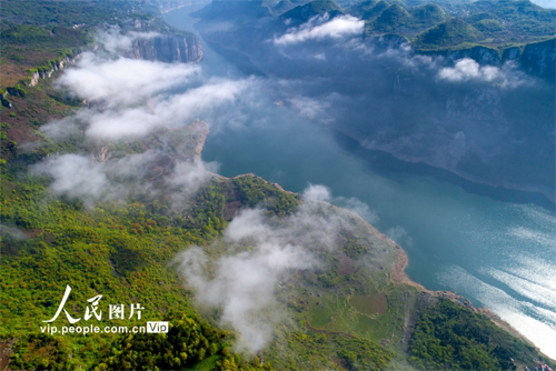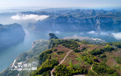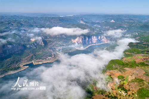 2022年4月3日,貴州省黔西市新仁苗族鄉(xiāng)化屋村雨后初霽,壯麗的山川、秀美的六沖河,連同峽谷中飄動的晨霧,構成一幅美麗的烏江源春日畫卷。