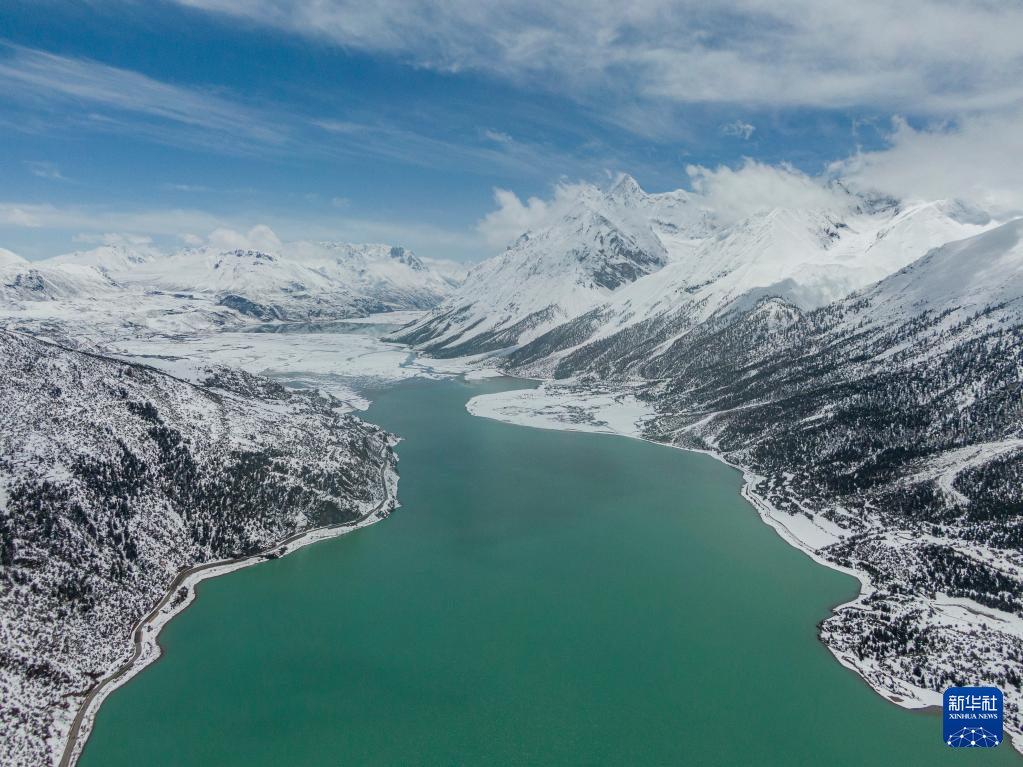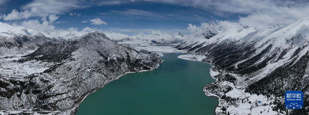這是無(wú)人機(jī)拍攝的然烏湖(4月24日攝)。