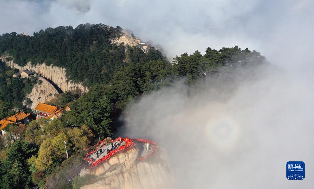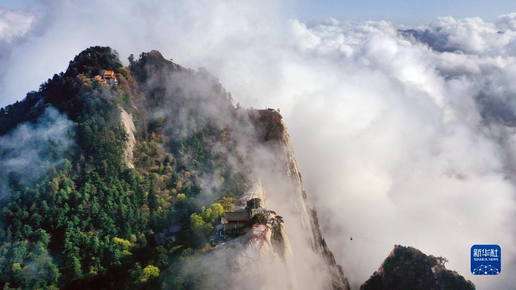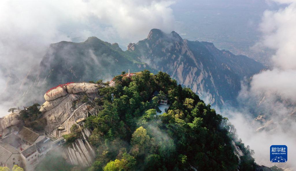 云霧中的華山南峰(4月28日攝,無(wú)人機(jī)照片)。