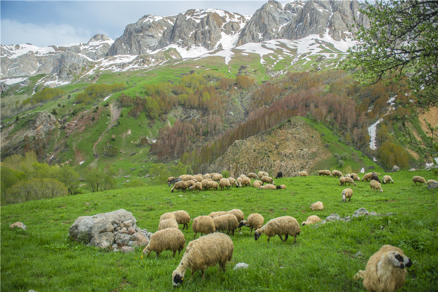 近日,土耳其通杰利高原全景,白雪皚皚中一抹綠色美如童話。