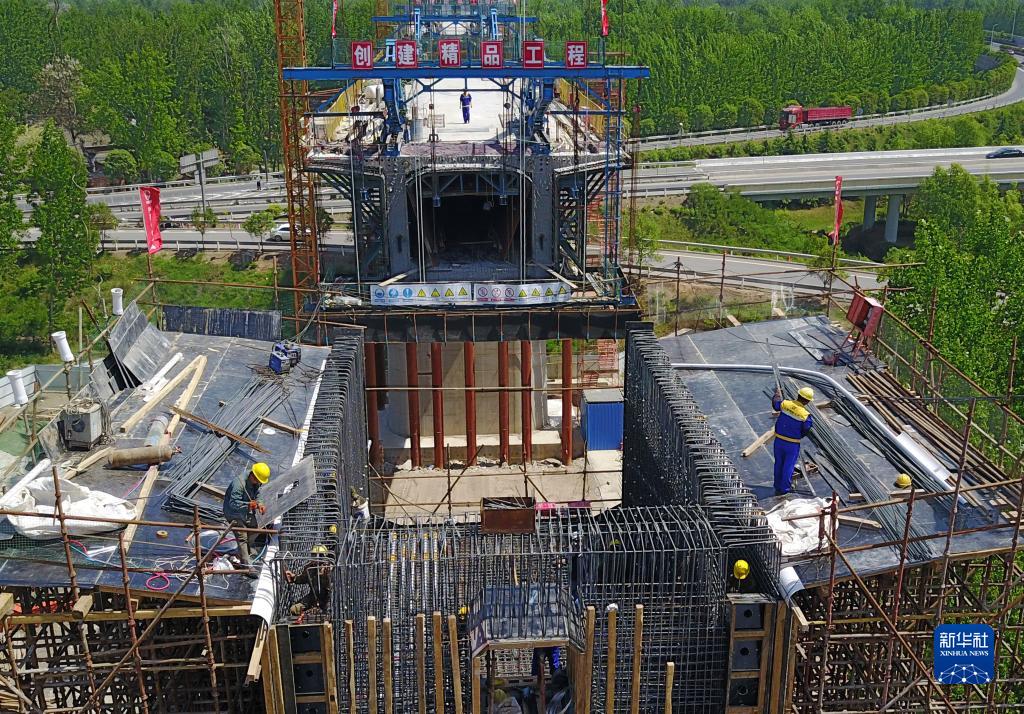 工作人員在鄭渝高鐵河南平頂山段一處施工現(xiàn)場作業(yè)(2017年4月29日攝)。