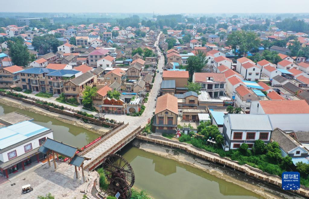 這是7月27日拍攝的河南新鄉(xiāng)長(zhǎng)垣市丁欒鎮(zhèn)官路西村(無(wú)人機(jī)照片)。