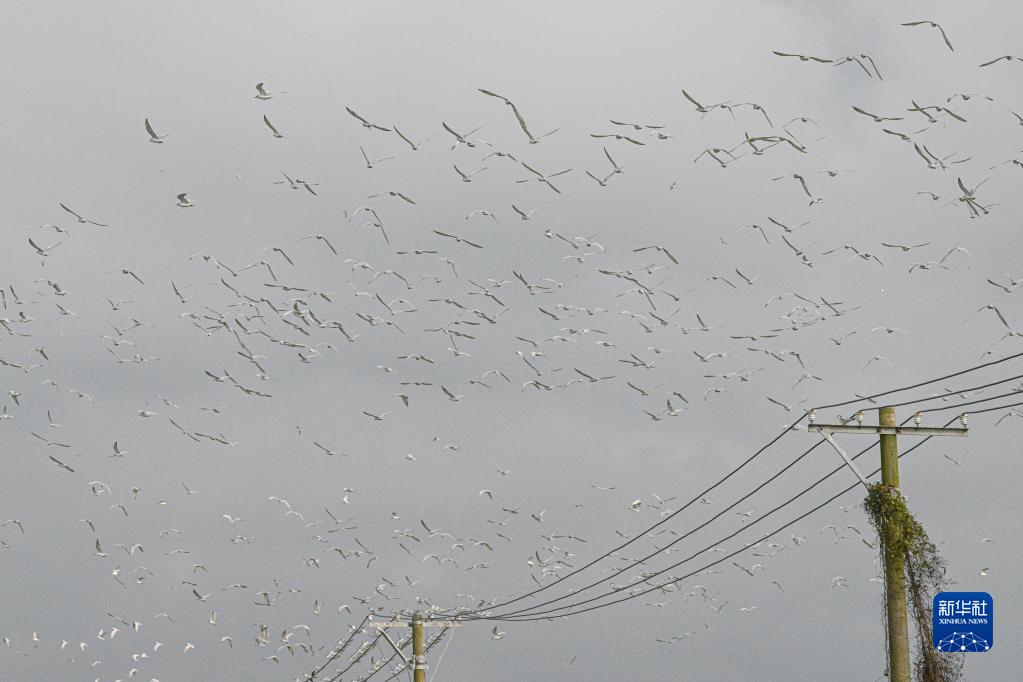近期,不少候鳥進(jìn)入海南越冬。在首批“國際濕地城市”??谑械拿捞m區(qū)一處濕地,大批前來越冬的須浮鷗呈現(xiàn)“萬鳥翔集”景象。鳥群時而群飛,時而整齊棲息,頗為壯觀。
