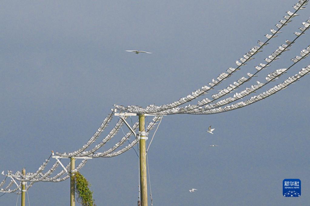 近期,不少候鳥進(jìn)入海南越冬。在首批“國際濕地城市”海口市的美蘭區(qū)一處濕地,大批前來越冬的須浮鷗呈現(xiàn)“萬鳥翔集”景象。鳥群時而群飛,時而整齊棲息,頗為壯觀。