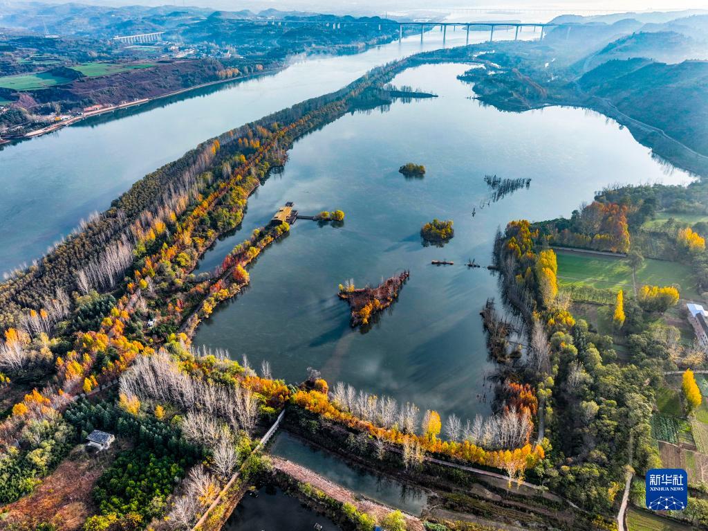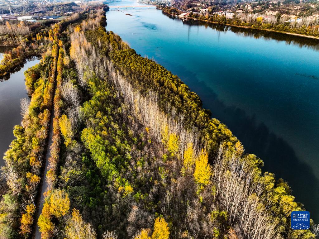 11月14日拍攝的河南黃河濕地國家級(jí)自然保護(hù)區(qū)濟(jì)源段景色(無人機(jī)照片)。