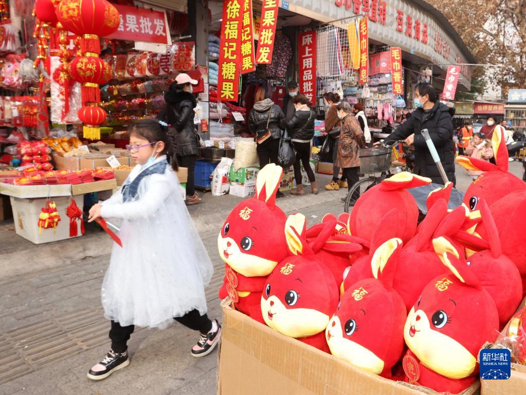 1月9日,居民在安徽省蕪湖市長街挑選節(jié)慶飾品。新華社發(fā)(水從澤 攝)